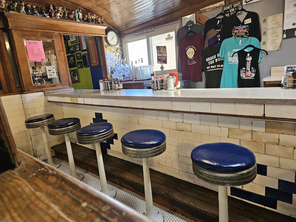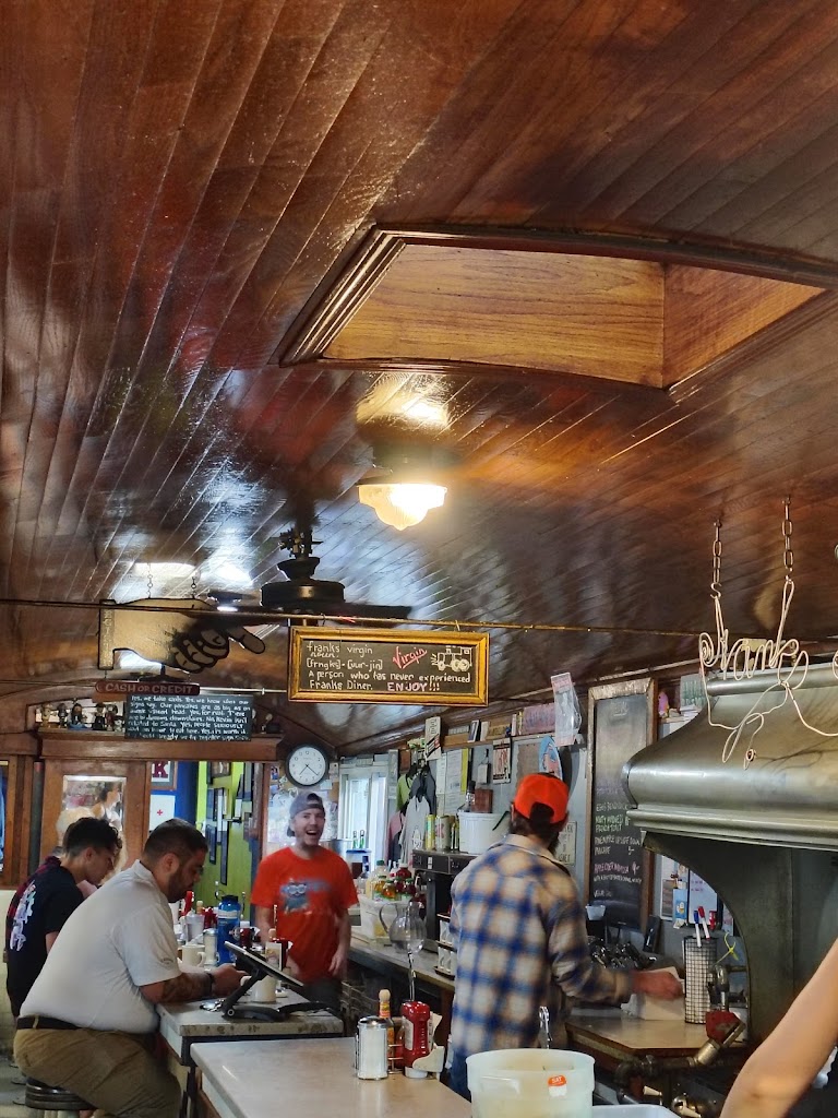 This diner is one-of-a-kind! I enjoy the great atmosphere and vibe from the staff. My favorite is the B's & G's, but today the chalkboard said the soup was Bacon Cheeseburger!