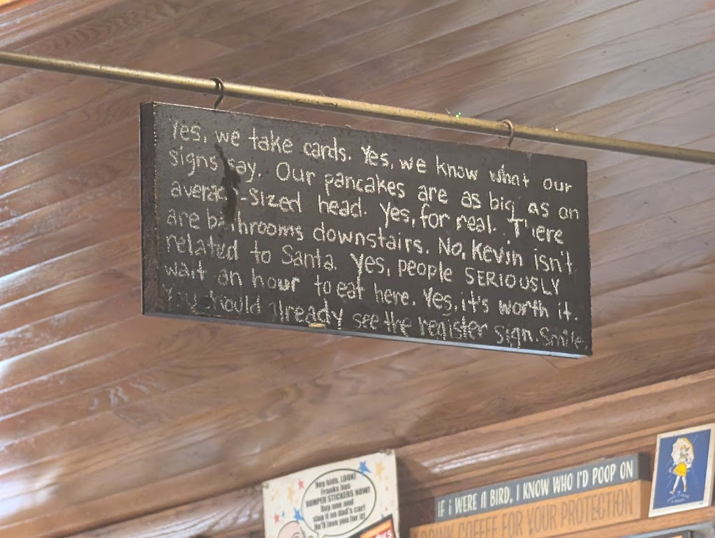3rd trip up north. Always good food and funky atmosphere. I had a jalapeño burger and my wife had pancakes. Both were great.
