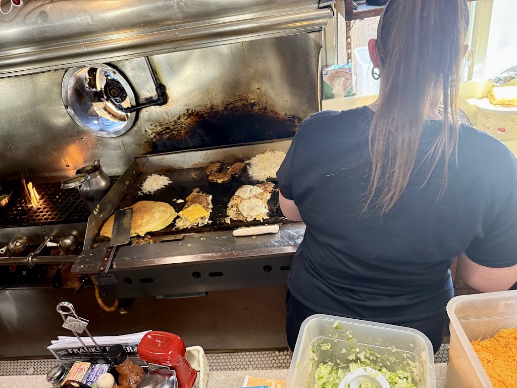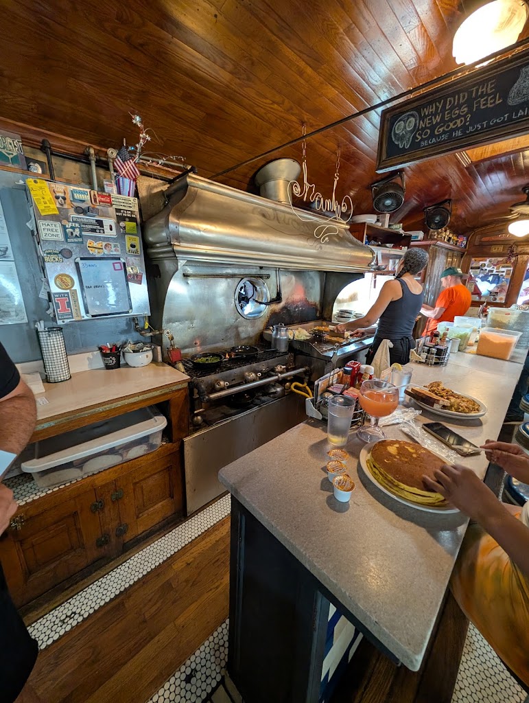 Place is legendary. Great food and the entire staff has great attitudes and works super hard. Sandy kills it on the griddle. Tequila shots at 11am!