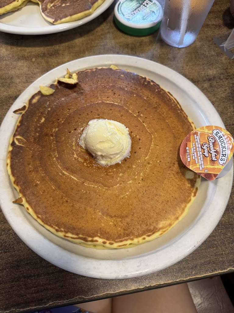 Best Pancakes I have had eating out EVER!!! These beat Dennys and IHop by a mile!!! They are fluffy and flavorful and yellow(?) and AMAZING!!!! The wait was 45 minutes but quicker because we wanted to eat outside at a table. There were a TON of bees but they weren’t in the least bit aggressive-just makes sure you keep your drinks covered because they get nosey about that sweet smell-they were truly harmless and actually entertaining. We opened a syrup and sat it on the opposite of the table and it kept them entertained and sugar drunk so all was good. Frank’s wasn’t just great food-it was an EXPERIENCE!! Ohhh plus LOVED OUT WAITER!!! He was awesome!!!