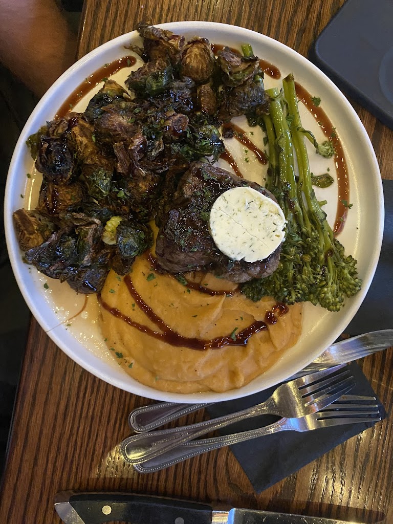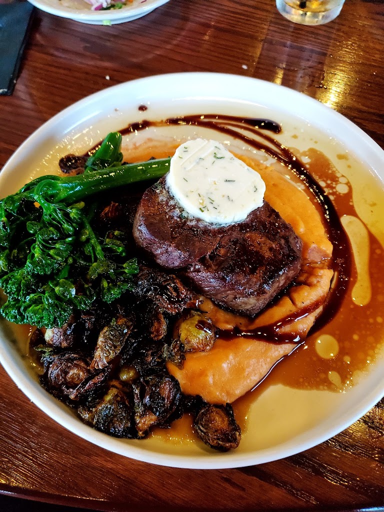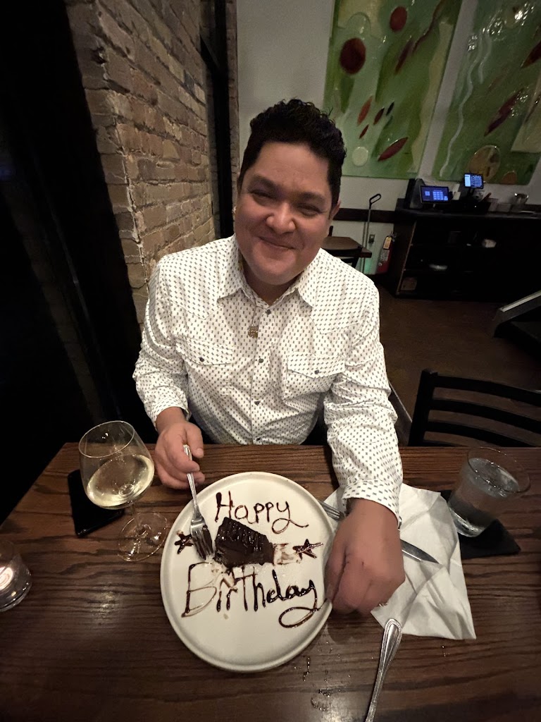 Nos encanto desde el primer instante en el que entramos al restaurante el lugar es tan lindo y acogedor al entrar nos recibieron con una amable y cordial sonrisa, yo había reservado una cena de cumpleaños con mi esposo y pedí una mesa afuera pero cuando llegué me recomendaron una mesa adentro ya que afuera estaba algo oscuro y aceptamos nos llevaron a nuestra mesa y el lugar me seguía pareciendo encantador al sentarnos rápidamente se acercó la mesera tan linda y con una amabilidad muy agradable nos ofreció algo de tomar nos dio el menú y bueno a grandes rasgos nos atendió bastante bien pedimos lo que queríamos cenar y la carne estaba deliciosa bueno exactamente todo era perfecto hasta ese momento mi esposo ( que estaba cumpliendo años) estaba tan feliz por la amabilidad que tenían hacia El al saber que era su cumpleaños en fin puras maravillas puedo hablar de ese restaurante para cerrar con broche de oro le dieron a mi esposo de postre un pedazo de chocolate con un chispeta encendida con la leyenda de “feliz cumpleaños” obvio eso corrió por cuenta de la casa 😊… la verdad no dudaremos ni un momento en volver a regresar todo fue genial ahí se volvió uno de mis lugares favoritos en Appleton de ahora en adelante 👏🏻