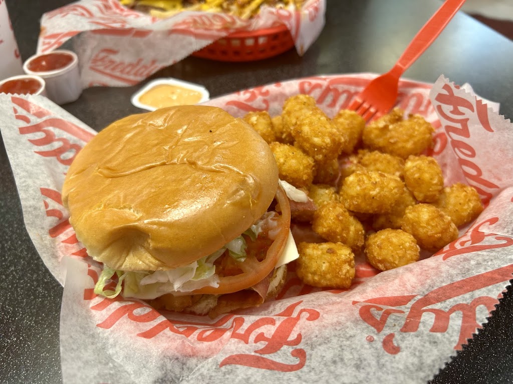 The customer service experience itself was worthy of a five-star review. The food secured it. The vibes are familiar yet distant, and the food was served fresh and clear care was taken during the preparation process. Our cashier, McKenzie, was extremely patient with the ordering process. Overall, Freddy’s was amazing.