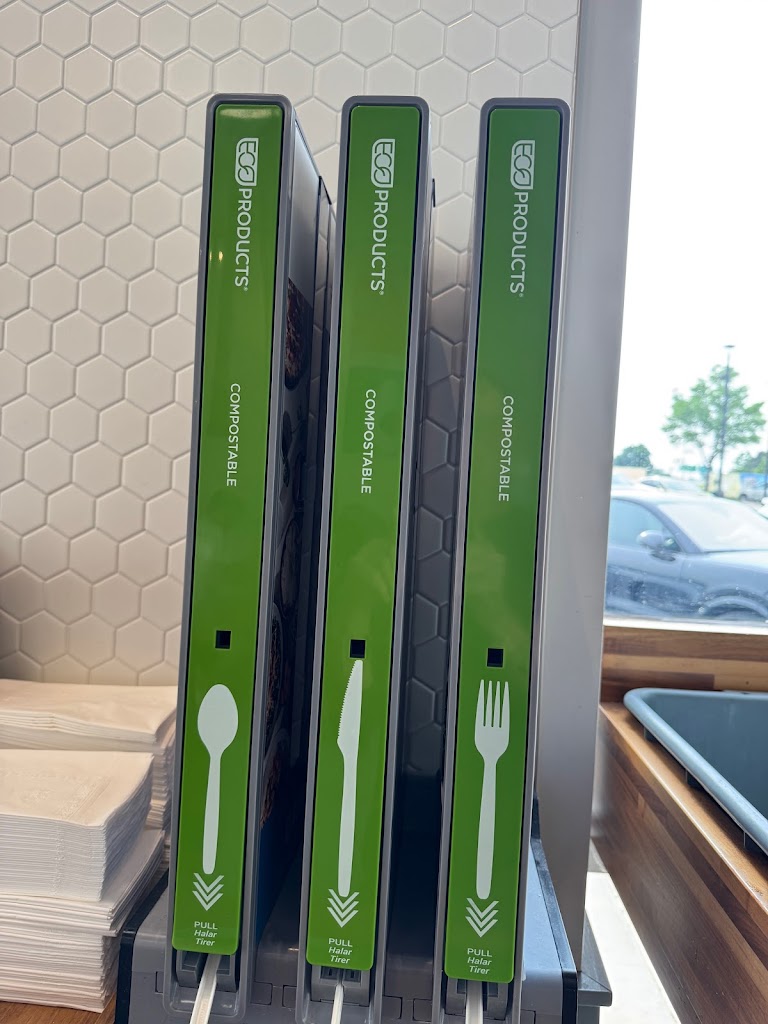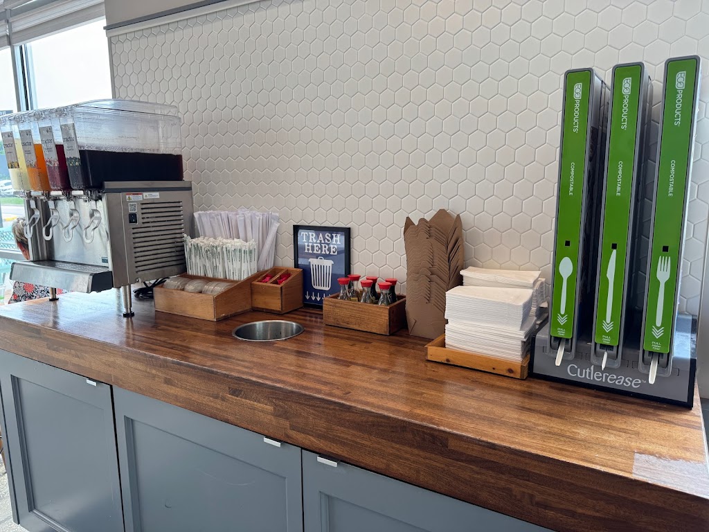 This location is part of the Brookfield Corners Center. Parking was easy, in that they surface lot is right across the road. The inside dining area is spacious, well lit, and casual. You can either order at the Kiosk, or at the counter. First time here so we opted to order at the counter.