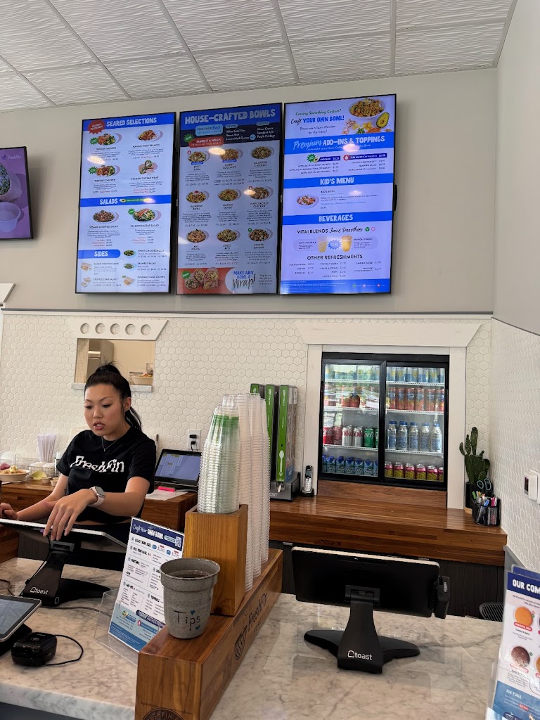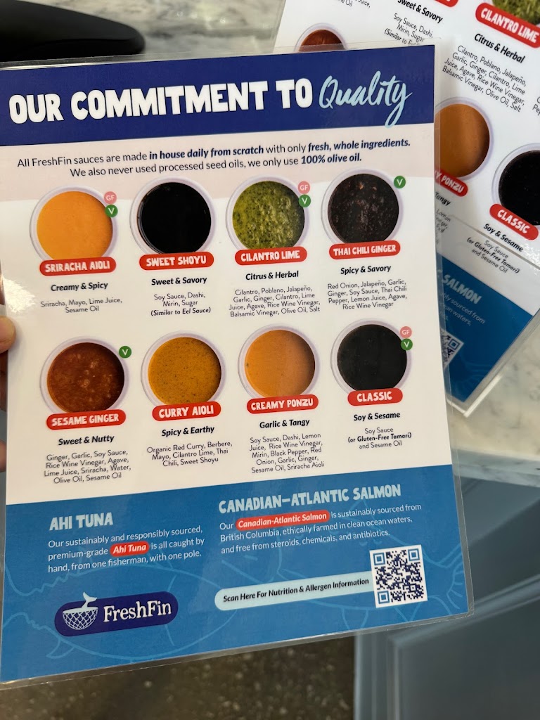 FreshFin offers house-crafted poké, protein bowls, and salads made with premium proteins and scratch-made sauces. Enjoy our popular Spicy Tuna bowl, Seared Salmon or Chicken Teriyaki dishes, or vegan options. Dine-in, takeout, delivery, or catering available! 🌊🥗