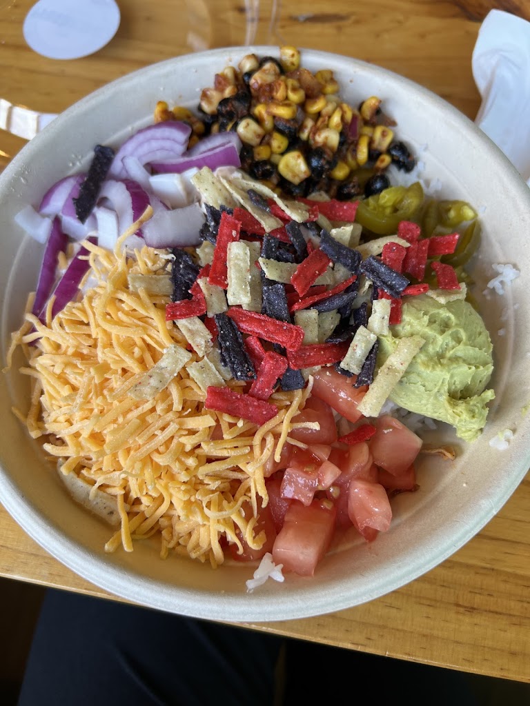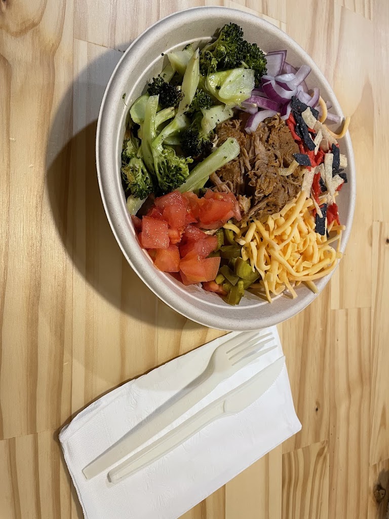 Good food and service, using compostable bowls and cups. Fresh and tasty ingredients.