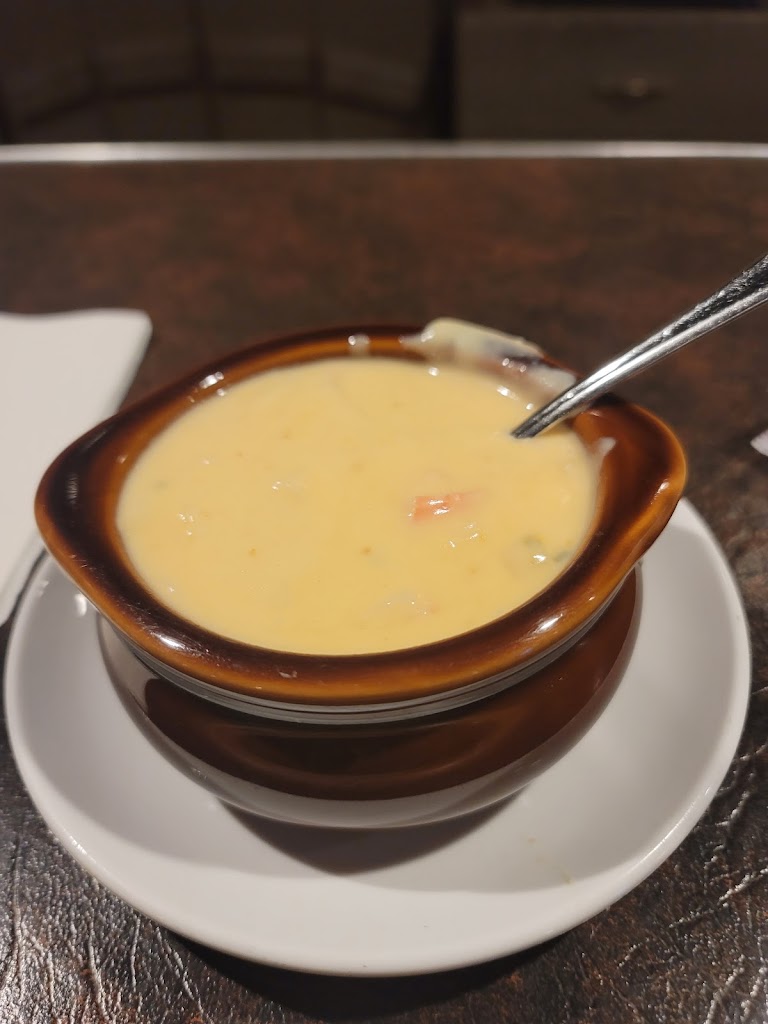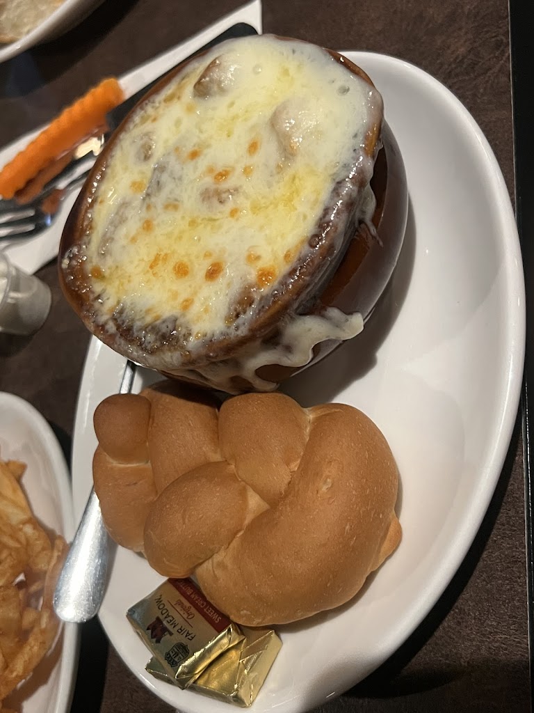 Onion soup in crock is the bomb. We each had sandwich ,soup. Every dinner finished. Waitress very friendly kept our glasses full without prompt. 5 start rating