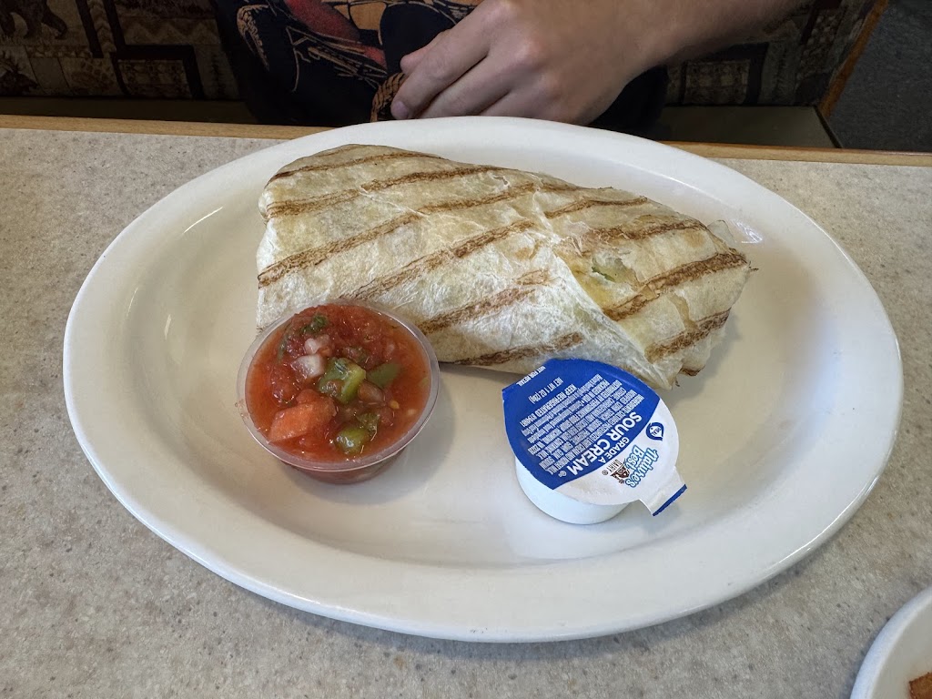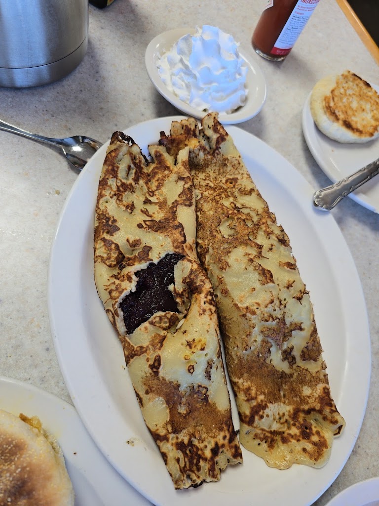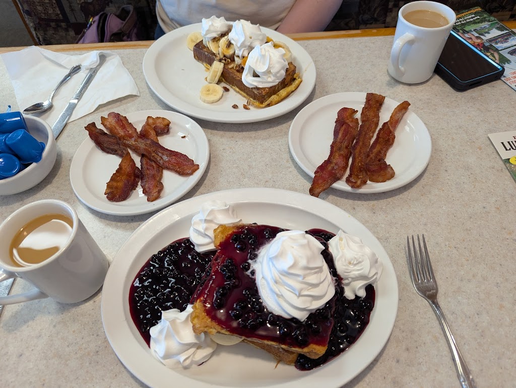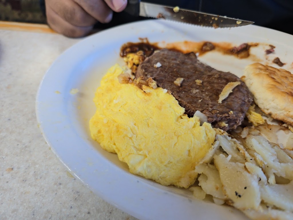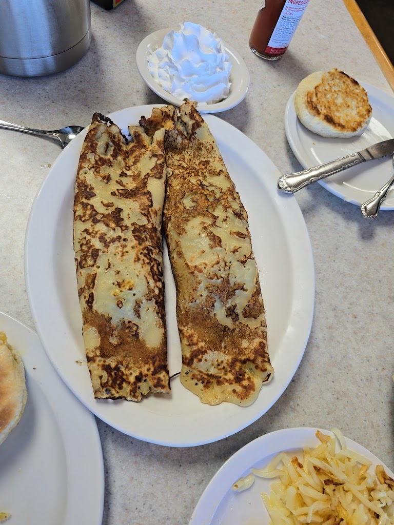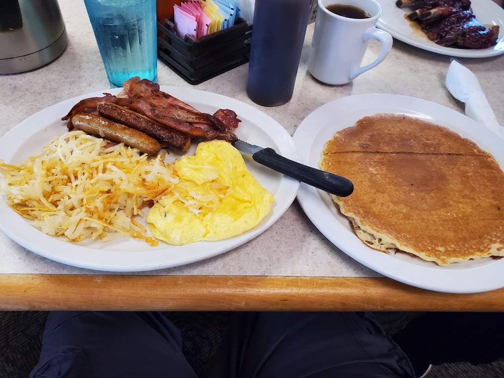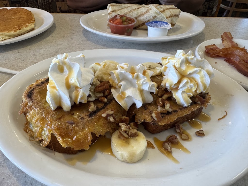 Great stop for breakfast! Good options, pricing and service. Got the new Homemade Banana Bread French toast! It was delicious! The burrito was good, though would have preferred steak instead of ground beef for the meat. Side of pancake was good too. Took it to go and ate it later in the day while on the road.