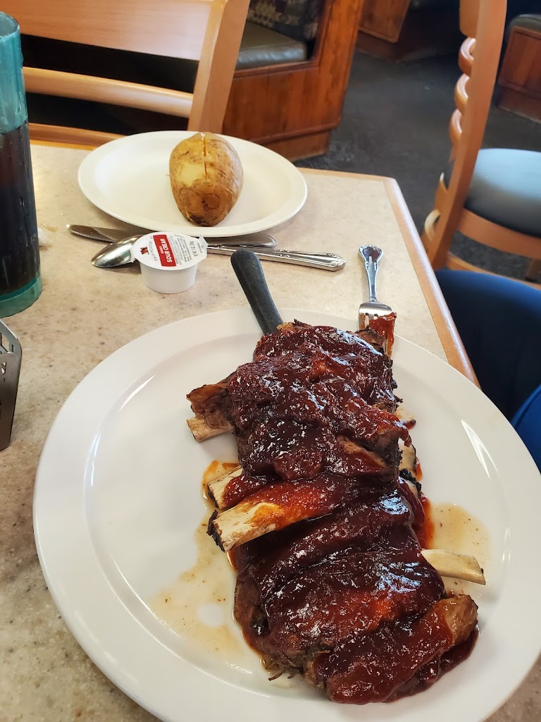 Pleasant place for a quick meal with reasonable prices. Huge variety on the menu. Probably safer to order sandwiches than dinners as the preparation of my ribs wasn't great. But my wifes burger looked great. With all of the great dining options around town you could do better, but for a breakfast all day, bottomless cup type family restaurant it's pretty good.