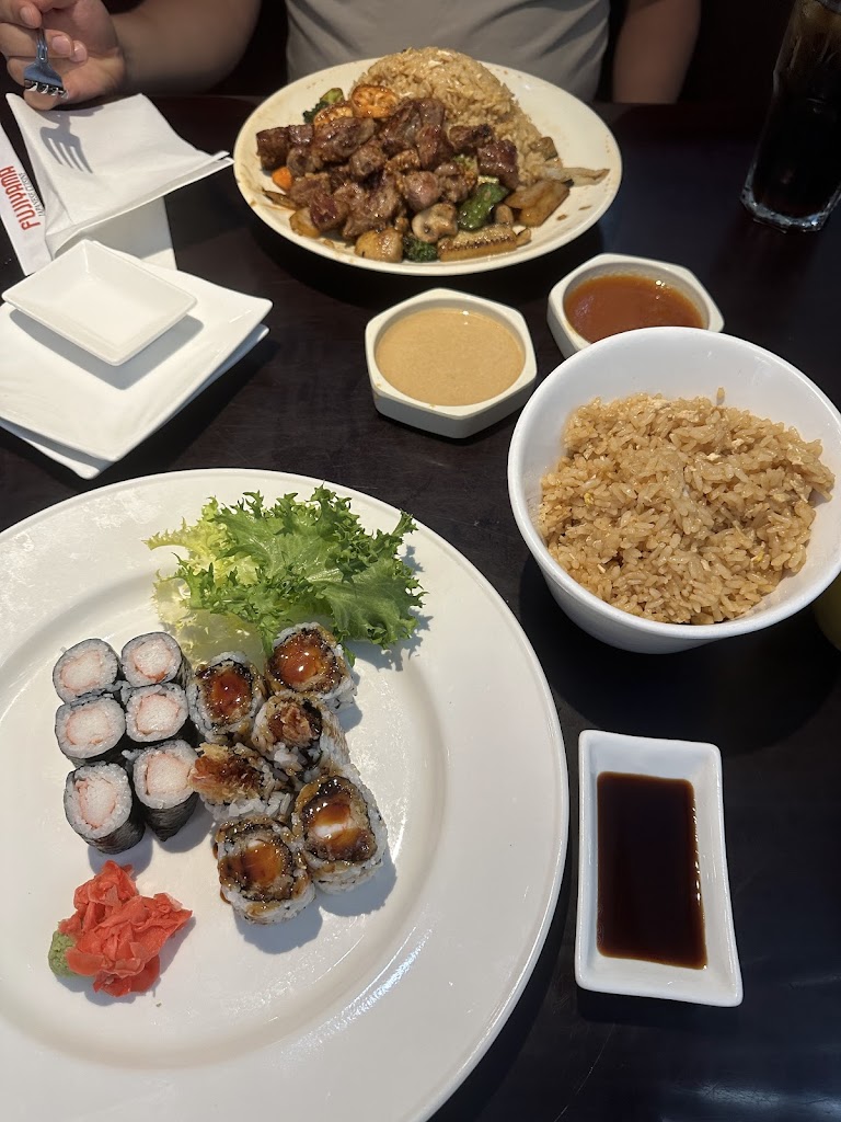 Love the hibachi dinner. The yellow mustard sauce is soooo good!!! Great portions too!! Also love the chicken fried rice! Sushi is fresh and good too!