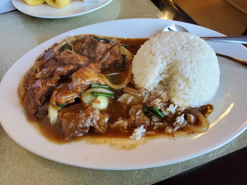 Always great food and always a great experience. Even my picky husband and children like the food. Pictured:Beef Stew with rice and Crab Rangoon.