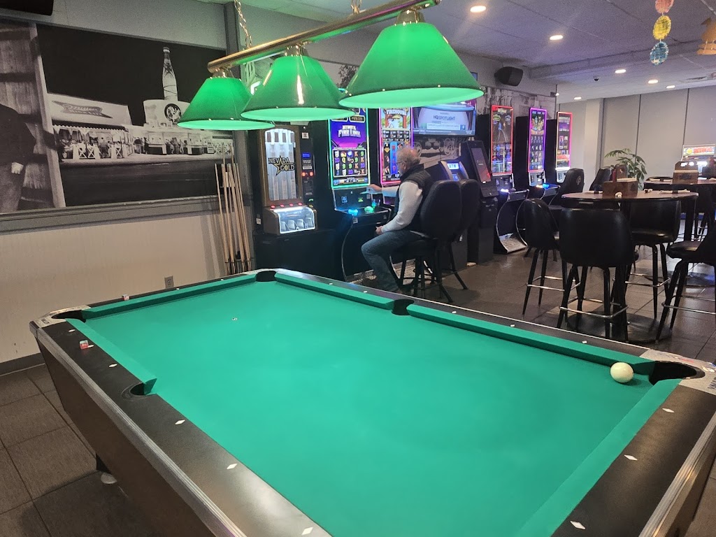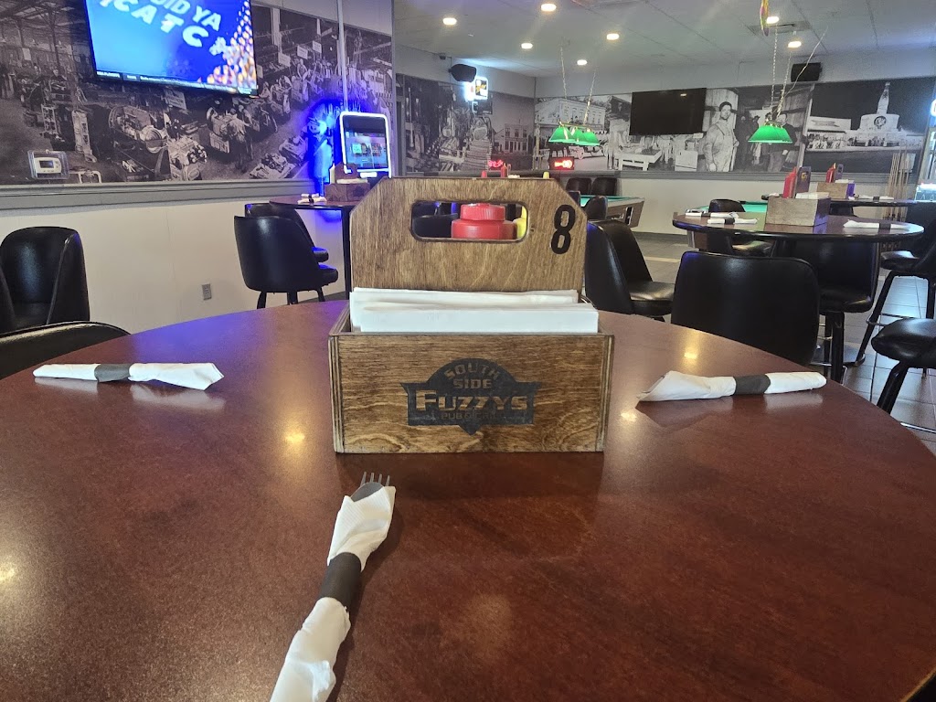It is clean at fuzzy, there food is so good, there service was amazing, I took my kids to eat there and they said the food was good and my kids won lots of candy, stuff animals, and toys, and I had fun playing the bar games and pool i recommend you to go there.