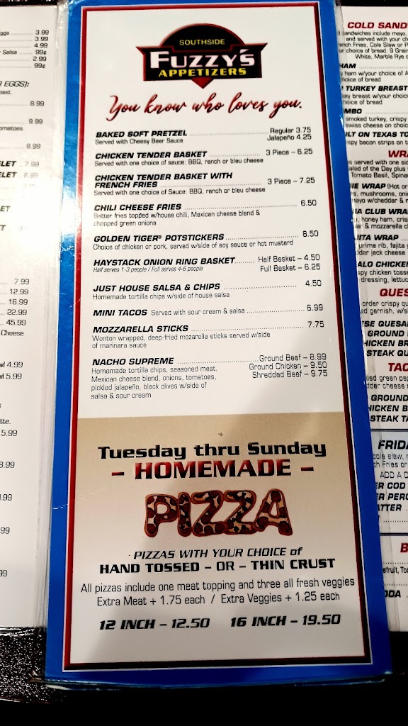 Haven't eaten at Fuzzy's in about 4 months. We've always liked their fish fry and its easily the best fish fry in Waukesha. Their cod is awesome and my wife likes their shrimp. I'd recommend Fuzzy to anyone looking for a great fish fry.
