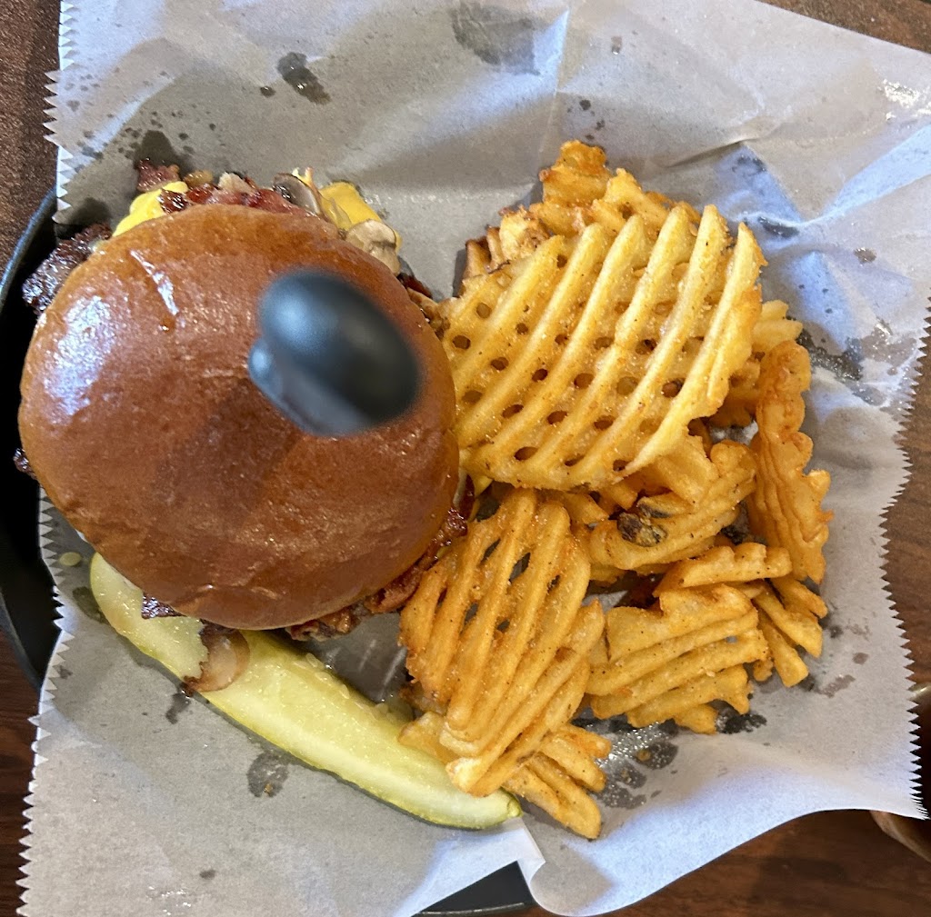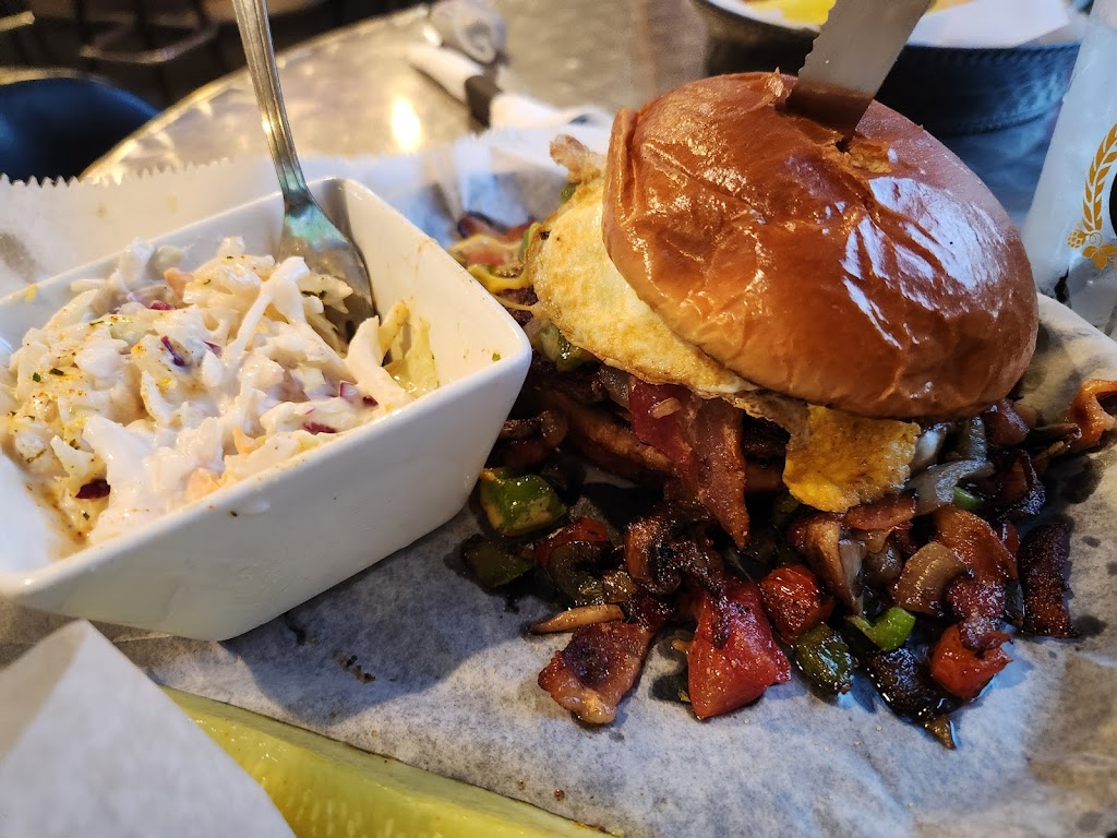 The food was delicious I had a hamburger that was called everything but the kitchen sink and it was delicious could not stop eating I was full and I could not stop eating it was so good