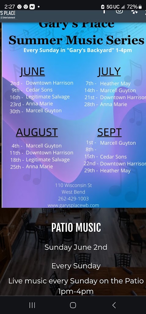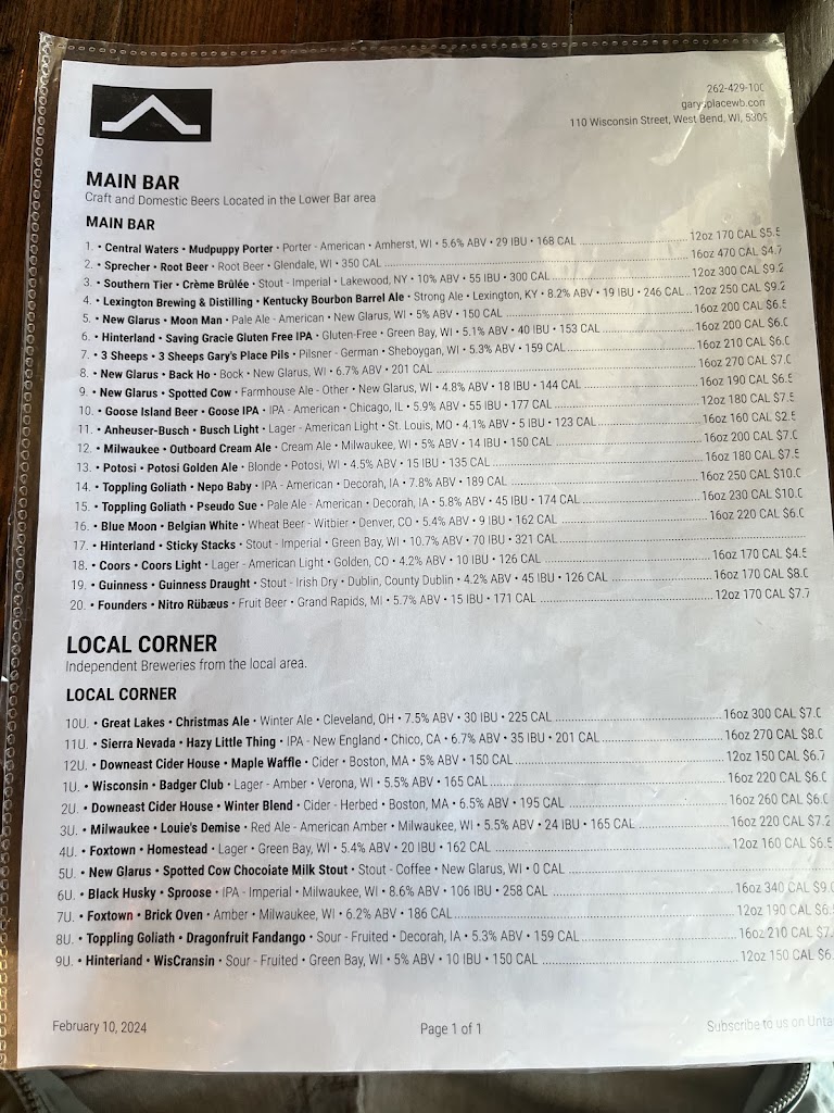 We have been visiting Gary's Place at least weekly for about as long as it has been here. Good food. Great service. They are like family. However, at the bar, you've got to keep your wits about you. Some strange characters stroll in and the bartenders welcome all of them (see photo).