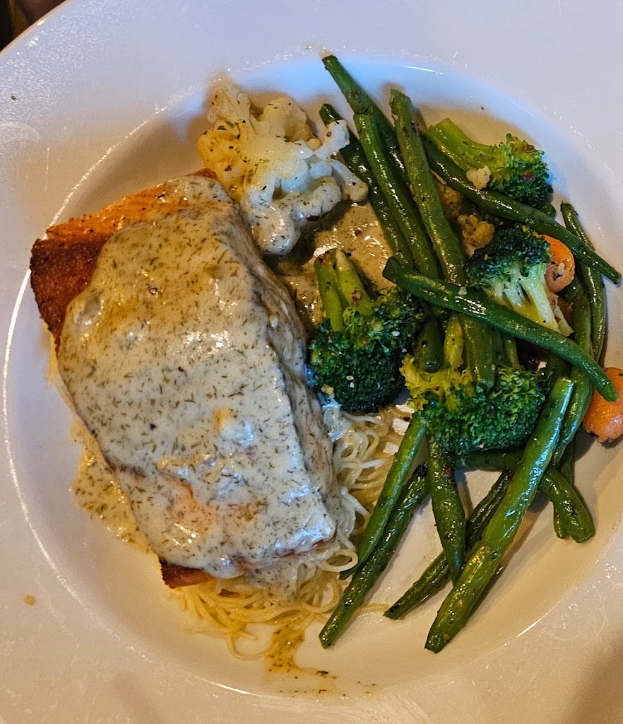 Went there for lunch today and sat on the patio. Our waitress was fabulous and the Salmon with Creamy Dill sauce (sauce on the side) was amazing. Highly recommend if you can’t decide what to order, get the salmon.
