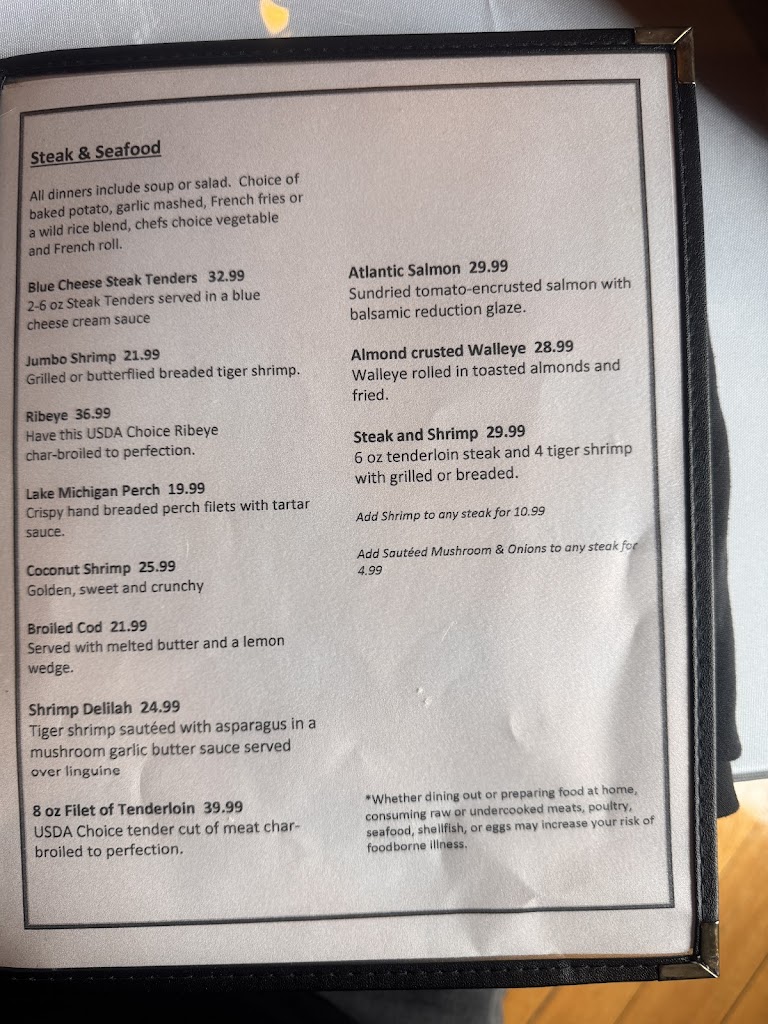 The restaurant has great food and is reasonably priced! Our group had the prime rib, steak and shrimp, and the ribs, and everything was great. The bar is a fun place to hang out, too.