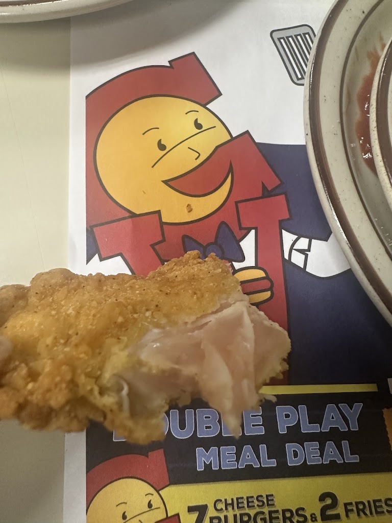 I always get the neon noodle soup (chicken flavored noodle) and hashbrowns. It seems the serving sizes have shrunk. The super George hamburger was so small. Fried chicken sandwich was a decent size. Fish fry was just okay for the price.