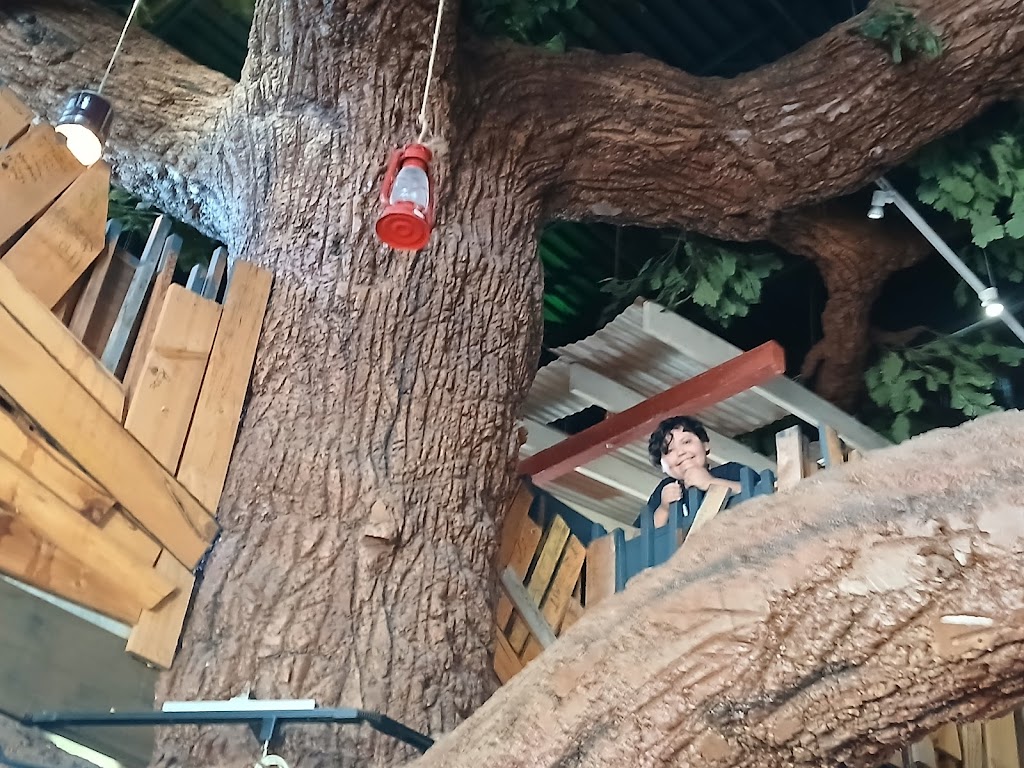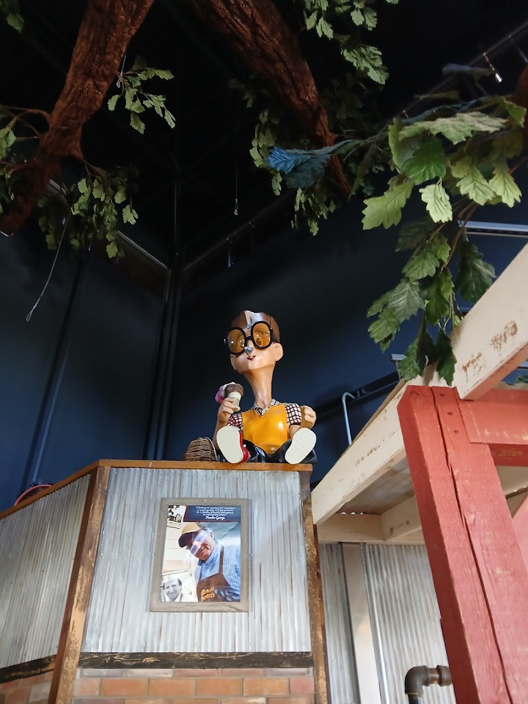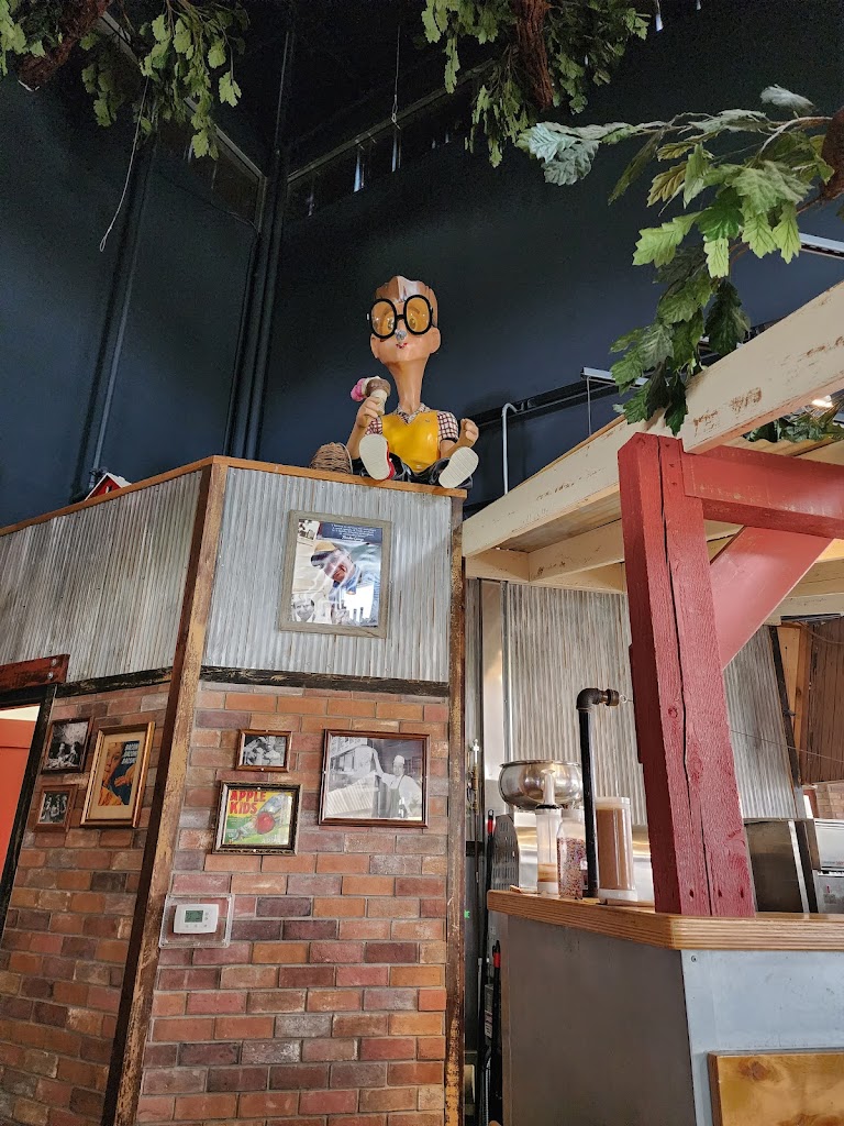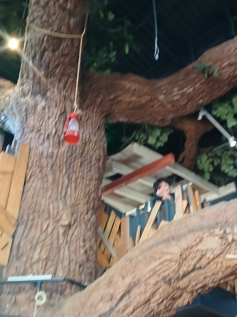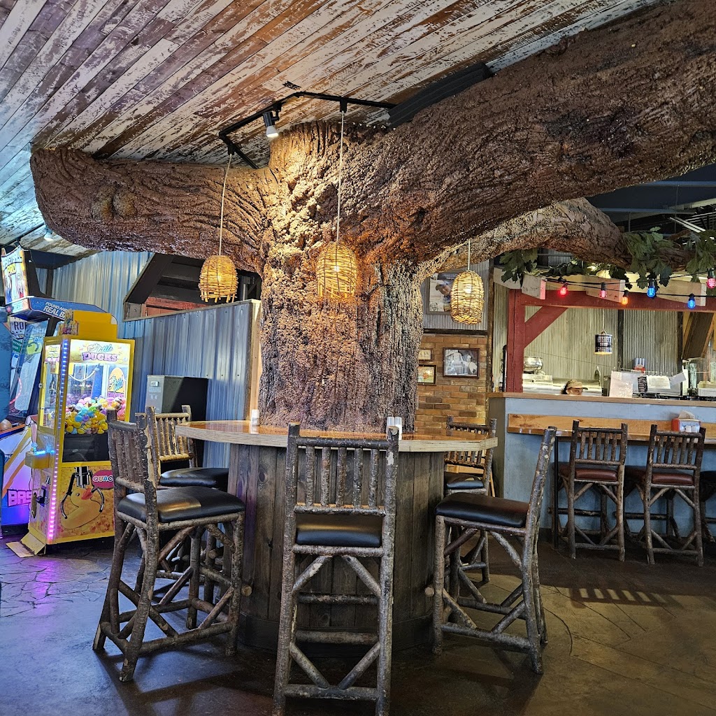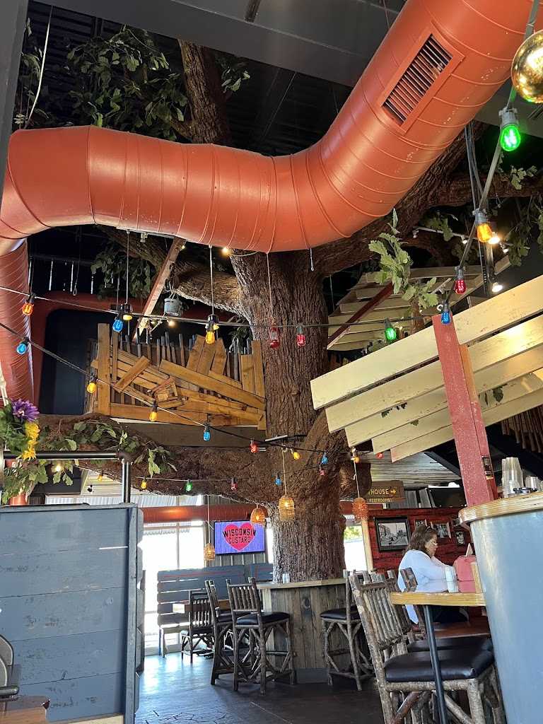 We stumbled upon this restaurant while visiting from Illinois today. I was shocked at how well our cashier entered our order. We didn’t know what we were ordering, the kids were mumbling through options with their sandwiches and shakes, yet everything came out correct! The inside atmosphere was cool. There was some damage done by previous customers like names scratched into our table and the tree trunk having some gunk on it, but that’s the fault of the customers. We wanted to sit upstairs in the tree, but it was full. I love the idea of the theme and the food was perfect for our family. I just wish it was bigger. Highly recommend!