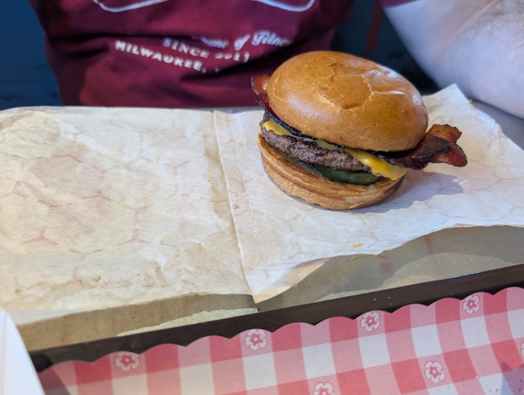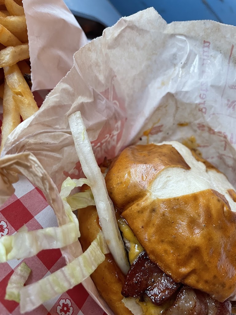 Burger and custard spot with a cute tree house built into the dining area. Solid burger with lots of fresh veggies. I really enjoyed that they use thick sliced pickles too.