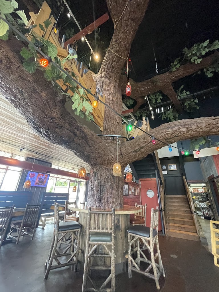 I like the creativity of this place a lot! Having the tree inside and the upstairs dining is very fun and was why I decided to come here in the first place. I think other restaurants should take notes! The service was also good, and the food wasn’t bad either. My burger and my partners burger were loaded up with a bit too much guacamole, but they were filling.