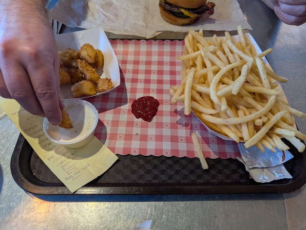 1st time here and in area and enjoyed it so much. Had cheddar melt added mushrm on bed of lettuce. Cant have bread. and beer burger and cheese curds it was so delicious.