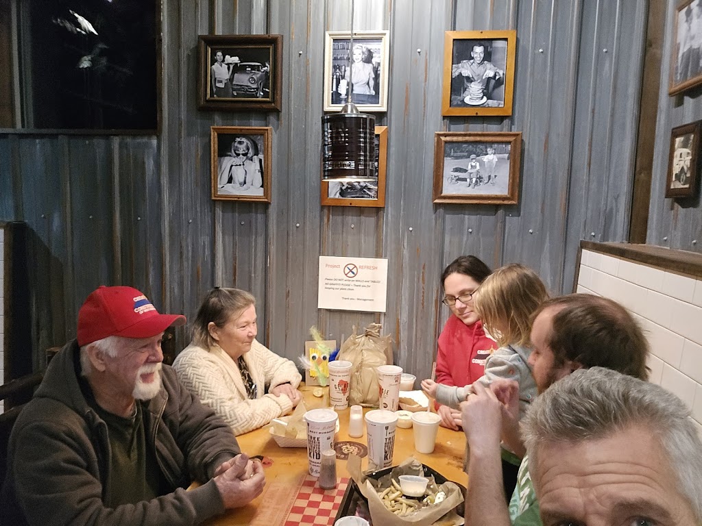 Cute place to take kids. The inside looks like a treehouse. You have a selection of hamburgers chicken tenders. They offer our kids meals.