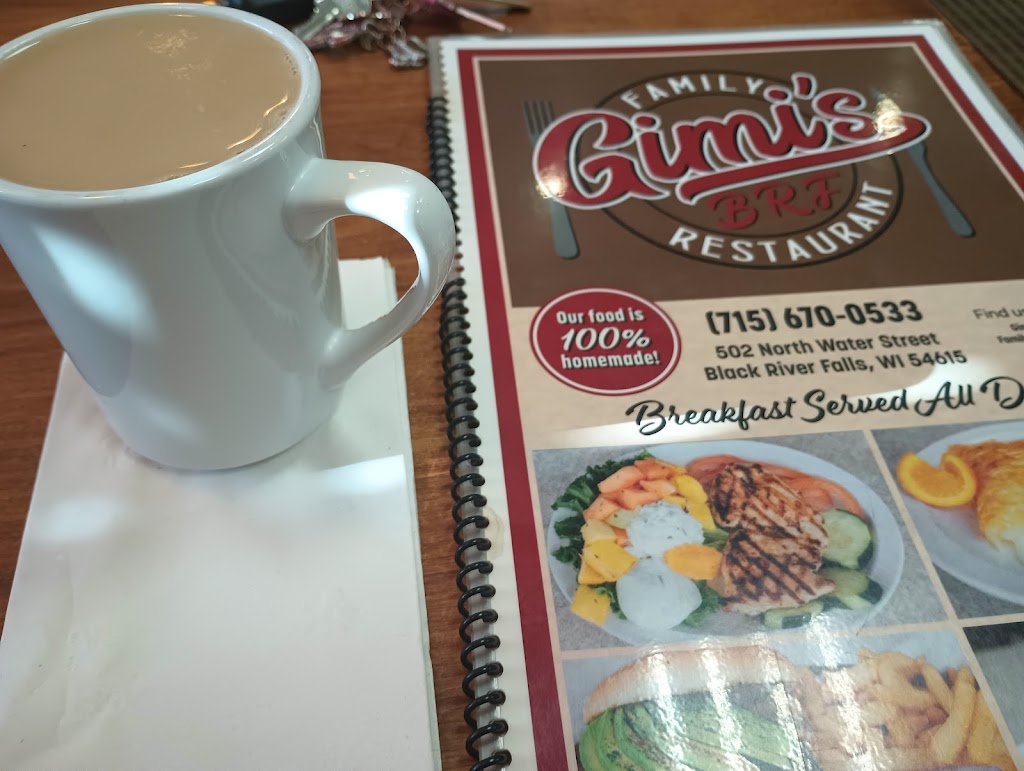 Stopped here for late lunch, I had the patty melt with salad and fries, my wife had the Mediterranean sandwich with chicken dumpling soup and fries, both sandwiches were excellent, service was outstanding and prices very reasonable, next time we are in black river falls we want to try the breakfast here.