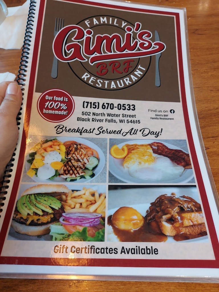 Just passing thru Wisconsin from Georgia to Washington State and I needed a real home cookin' breakfast and Gimi's gave me just that. Thanks Sue for great service. Thanks to the super nice lady with the multicolored hair. Thanks for the coffee to the young man about to begin his Sophomore year. This was an extremely pleasant hometown feel restaurant and the food was sooooooo 👍👍👍👍