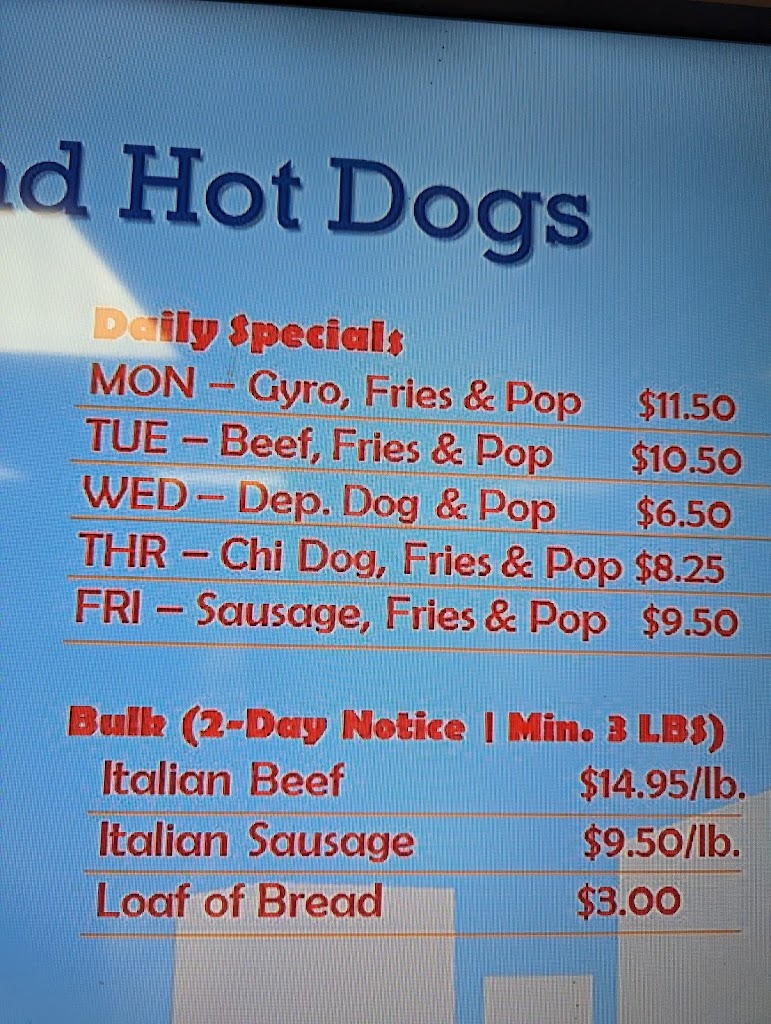 Serving the areas best in Chicago Beef, Hot Dogs and Gyros.