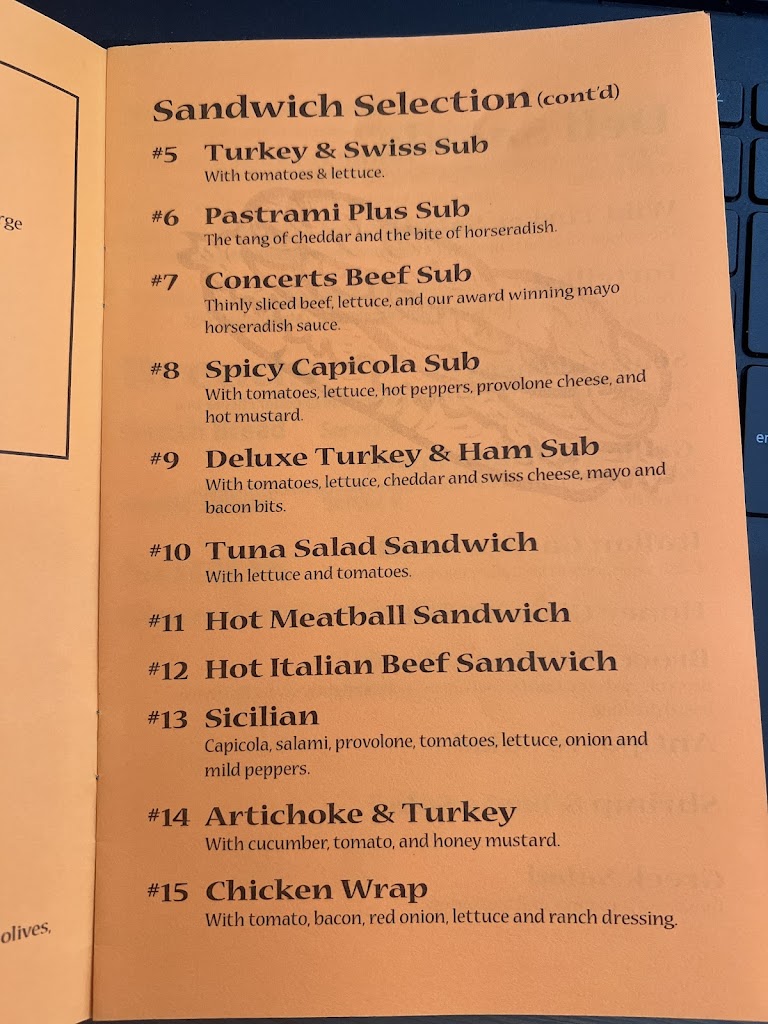 Menu is straightforward and very basic no frills . I got the Italian roast beef sandwich and a bag of chips . Cannot complain it was good basic sandwich but not something unusual.