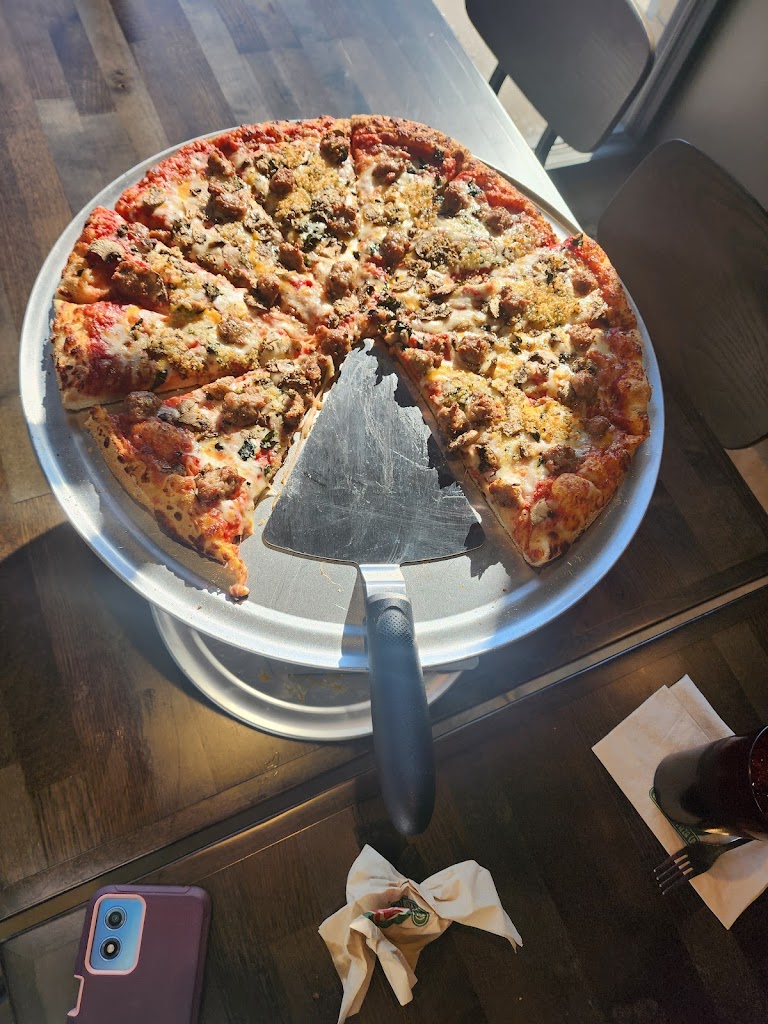 Good pizza, clean restaurant, and a kind staff. We had a pretty large order today for my daughter’s birthday party and the pizzas were fresh and ready to go when I walked through the door to pick them up. Great Vegan option for my wife and gluten-free for my step mom with celiac. The traditional pizza has the best crust for dunking. Huge hit, lots of people at the party who tried it for the first time who were very impressed.