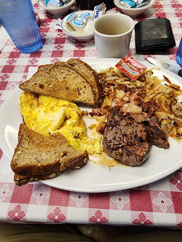 Our new favorite place for breakfast ❤️ Their steak and eggs is like nothing I’ve ever had before. Talk about small town service - this husband and wife team are incredibly personable and hire the most wonderful staff. I absolutely recommend - 5 out of 5 stars.