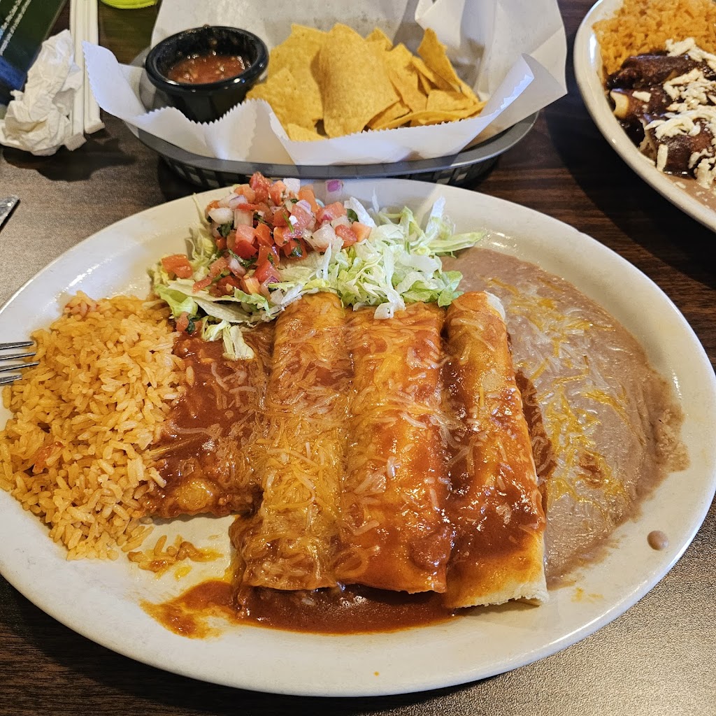 Decided to try Gloria's after looking at some reviews and being up in the Menasha area visiting friends. We took the 30 minute ride over to Brillion,WI and it was well worth it. By the way as was stated in a couple of reviews it is easy to miss as your coming into Brillion so when Google tells you your there slow down and look around. We were there around 2pm so it wasn't busy but there were several tables occupied but our party of 3 was seated immediately. While we checked out the menu our server brought us our drinks and some excellent tortilla chips and salsa and refried beans dip. We put in our orders and enjoyed our chips and salsa and bean dip while we waited for our orders to be brought out which wasn't to long and the food was excellent. We all ordered something different. I had the Enchiladas Spremas which is 4 Enchiladas of cheese,ground beef,shredded beef and chicken with rice and beans and shredded lettuce and pico on the side my companions had the Chimichanga dinner with ground beef and the Enchiladas Gloria's which is chicken Enchiladas with mole sauce both of those also came with rice and beans. All of our food was delicious and good portions everything about our late lunch here was great and the next time were in the area we will be back. If you are in the Brillion area or Neenah-Menasha,Appleton area you should check it out i don't think you will be disappointed.