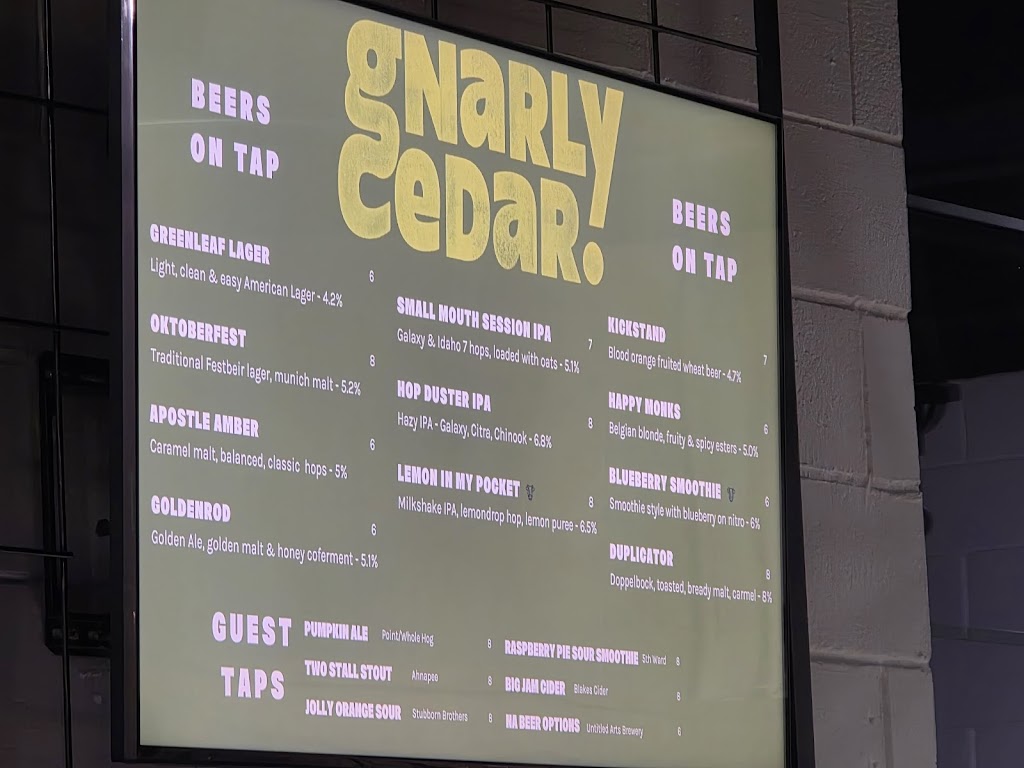 We went to Gnarly Cedar Brewery/ Ledgeview last night, Saturday and had such an enjoyable time. We both found a few brews to enjoy - me ambers and he IPA's. The service was fast and friendly. What made the night was the quiet conversations with the beautiful ledgeview landscape. We will definitely be back.