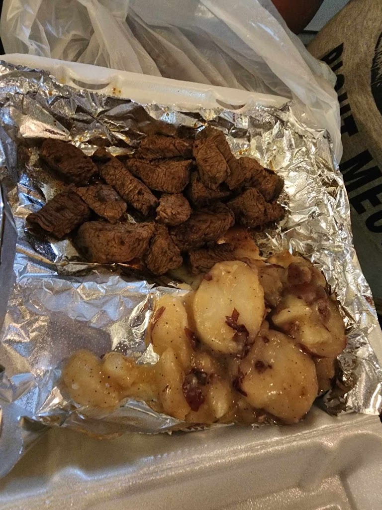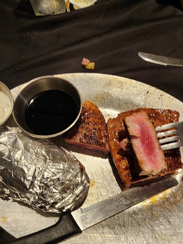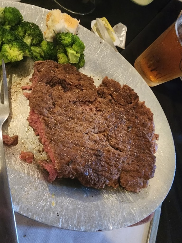 The steaks were tan, no sear. The beef tips were horrible, no gravy, just slices of beef.