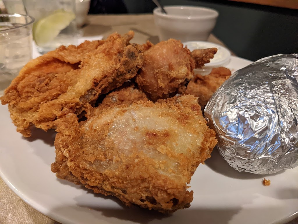 Great food.. Nice atmosphere. A bit disappointed w the service in the dining room...all you can eat chicken?? Not so much...had to ask and waited a long time for our food....would have liked more...gave up... But it was delicious.