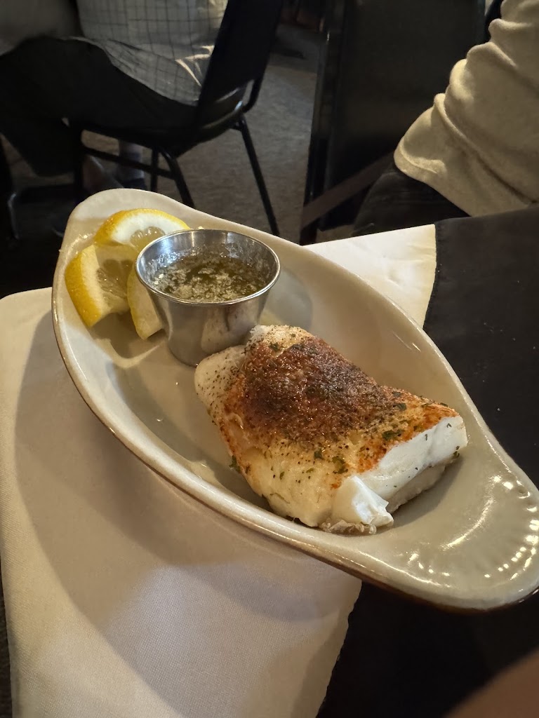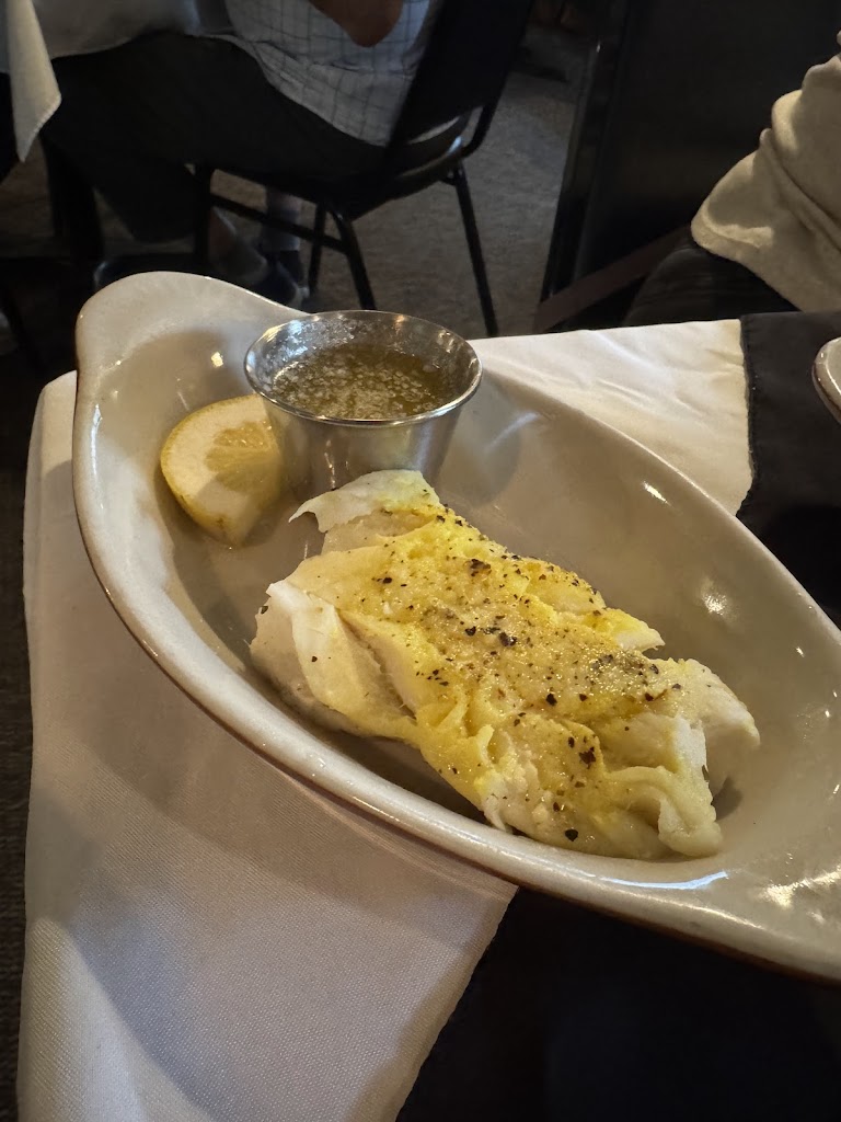 The meal was the biggest disappointment of the evening. The breading on the fish was soggy and the whole dish wasn't really served hot, it's like it had just been at the bottom of a try being kept warm under lights for an hour or more.