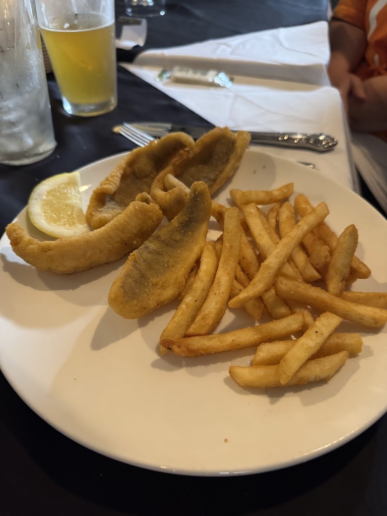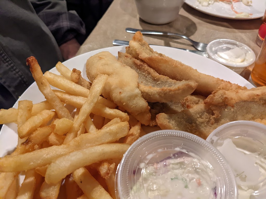 The perch had a nice light cornmeal breading and came with two butterflies.