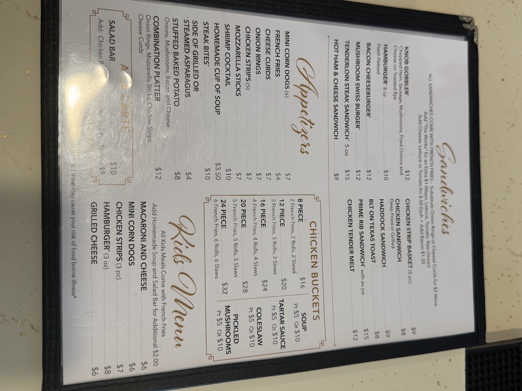 Knob is always perfect! Excellent bartender, excellent waitress, and outstanding fresh salad bar!!!