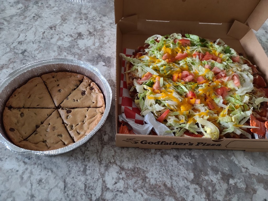 Taco pizza is always great. Also hard to pass up the giant chocolate chip cookie.