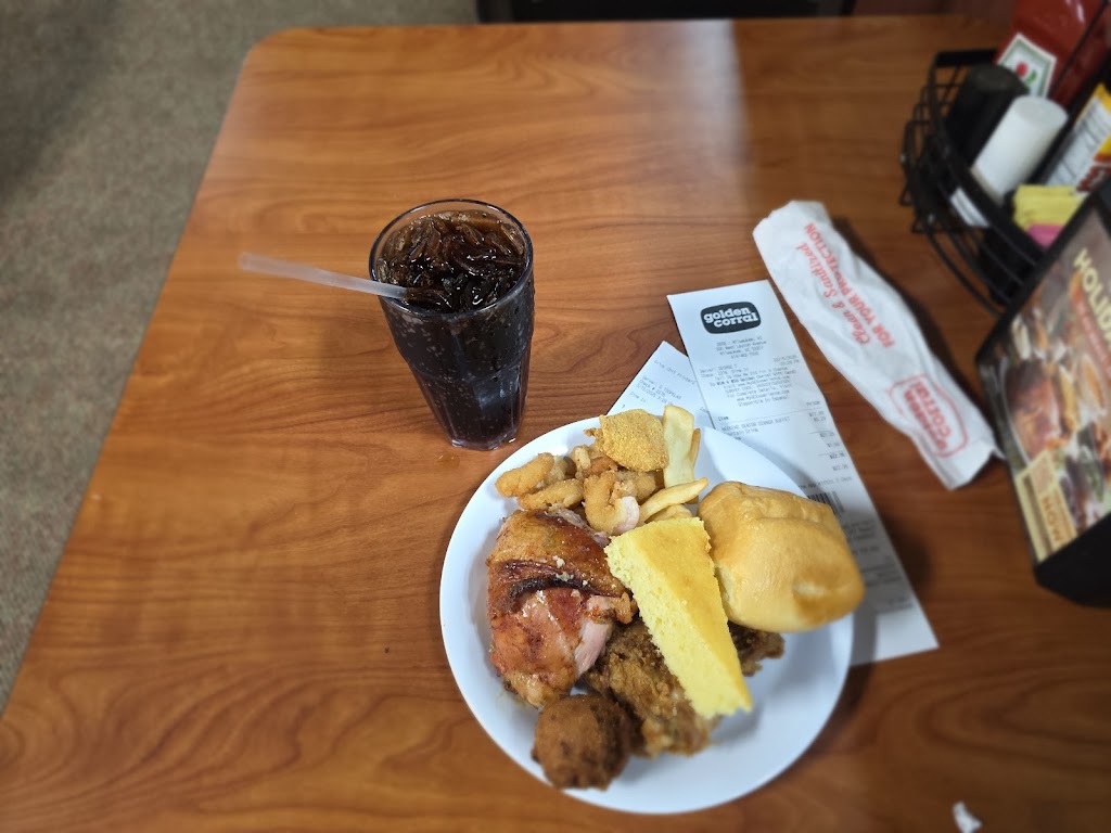 I've frequented this place quite often over the past year. 9 times out of 10 I get extremely sick and I can tell you exactly why. The food is usually really good for Golden Corral standards, but the problem is they don't use dry dishes. Most of the plates are wet still and it doesn't really matter if you dry it off because they'll take a cup soaked in sanitizer still and serve your soda in it so you're drinking some nasty soda with sanitizer in it. Avoid going here at all costs, but if you do go, don't drink snything and make sure your plate is dry.