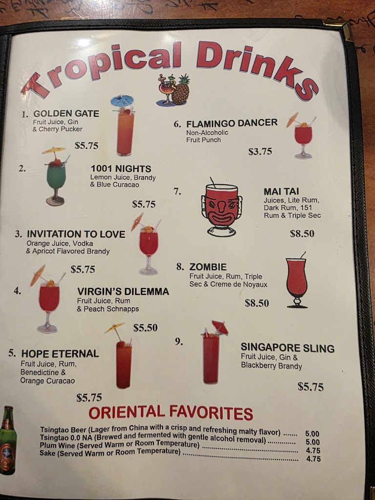 Really love this place and drive from shorewood because it is that good. Wonderful drink menu including the infamous Mai Tai. Owner is very nice and we eat at the bar usually to chat with him.