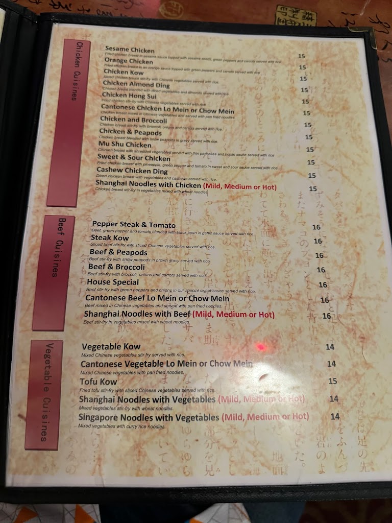 Always great food and friendly service. Best Chinese/Asian food in the area.