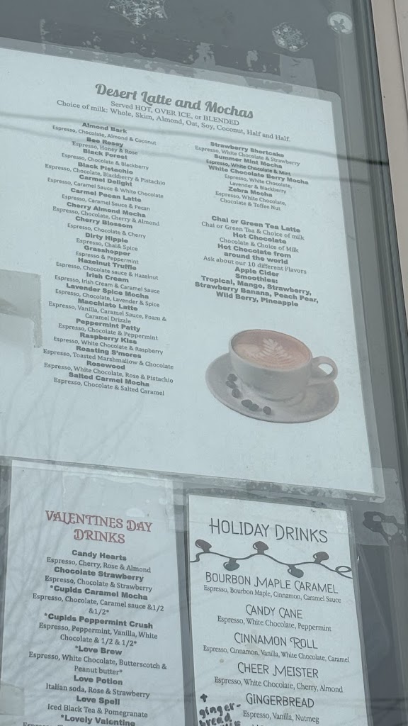 Our dessert latte & mocha menu offers over 25 hand crafted delicious options for you; our holiday drink menus offer even more!