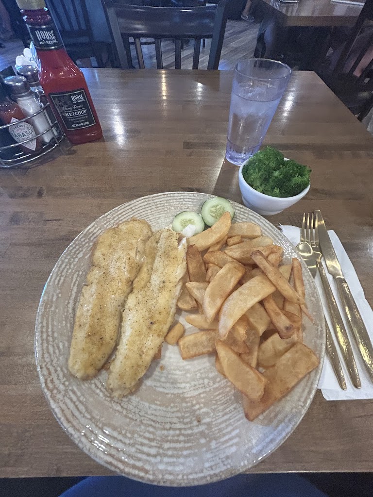 So disappointing. Very little food. Flat, thin chicken tenders. Fish sandwich was thin on hamburger bun. Strong Fish tasting! Large group. Slow service. We won't be back!