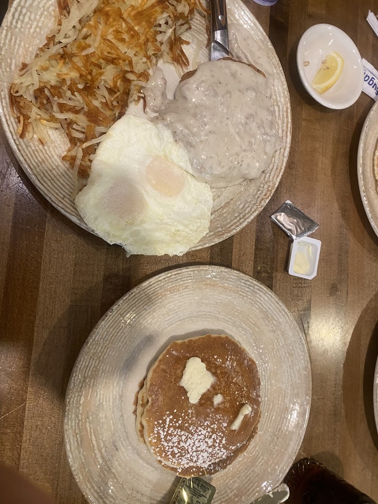 I had the country fried steak, which came with hashbrowns, pancakes, and two eggs. Definitely a hearty meal and appreciated the decent pricing. The decor was nice and simple and I was very impressed with the waitress and her continuing to check up on us and get refills and make sure we had a good time. At one point, we said something wrong and she didn’t quite realize it and then another time she said something wrong and we didn’t quite realize it but both times, she gave us the benefit of the doubt and laughed it off and then when we all realized what we weren’t understanding, we realize she was very gracious and humble. Definitely appreciate someone like that and glad places like this hire top notch people like that.