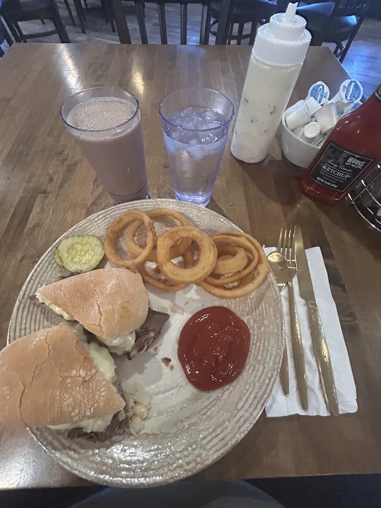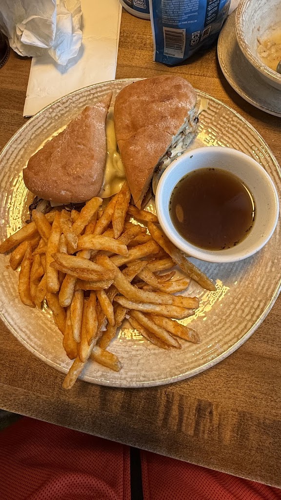 The food was great. I had a prime rib open face sandwich and a cup of chicken noodle soup, so good.
