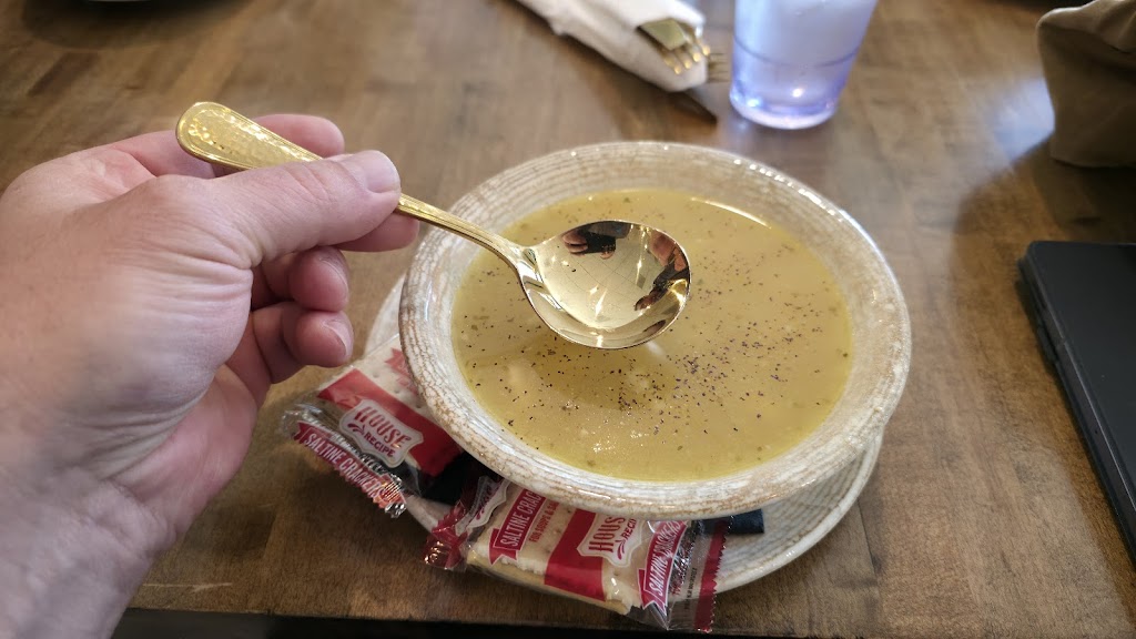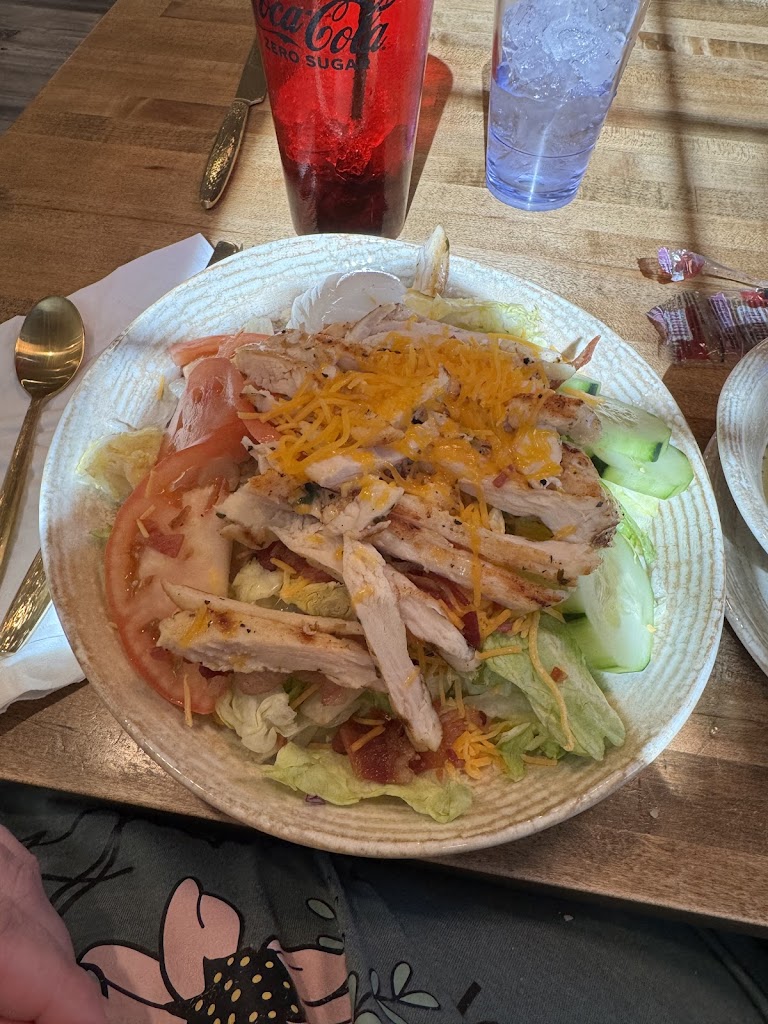 My daughter and I went for lunch. She had the chocolate chip pancakes. I had the chicken BLT salad with a bowl of their homemade chicken dumpling soup. My daughter and I both loved the soup and grilled chicken on my salad. She also enjoyed her pancakes. If in town again, we will be stopping here.
