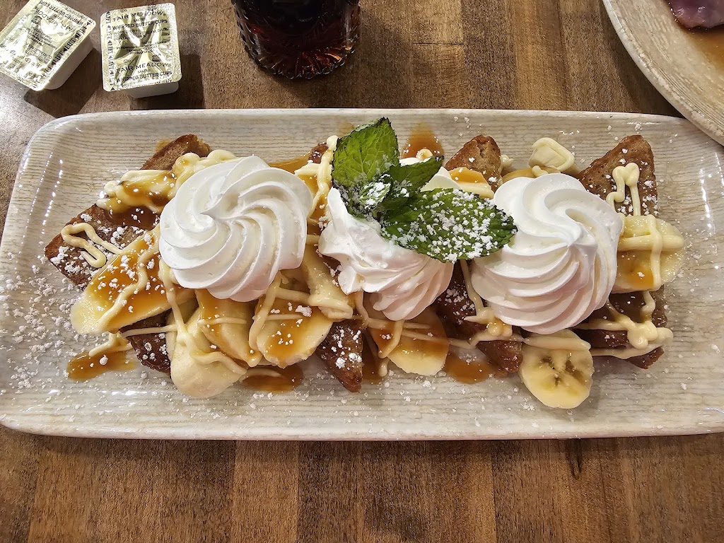 Went for a late breakfast, tried the banana French toast..... was absolutely delicious!!! Also great service as always from our waitress Stacy!