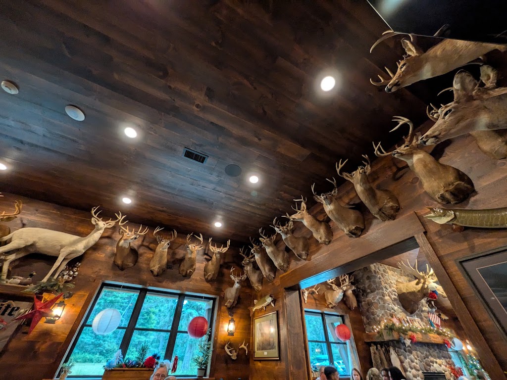 Nice place to eat. Many mounts on the walls and ceiling. Friendly servers. Clean.
